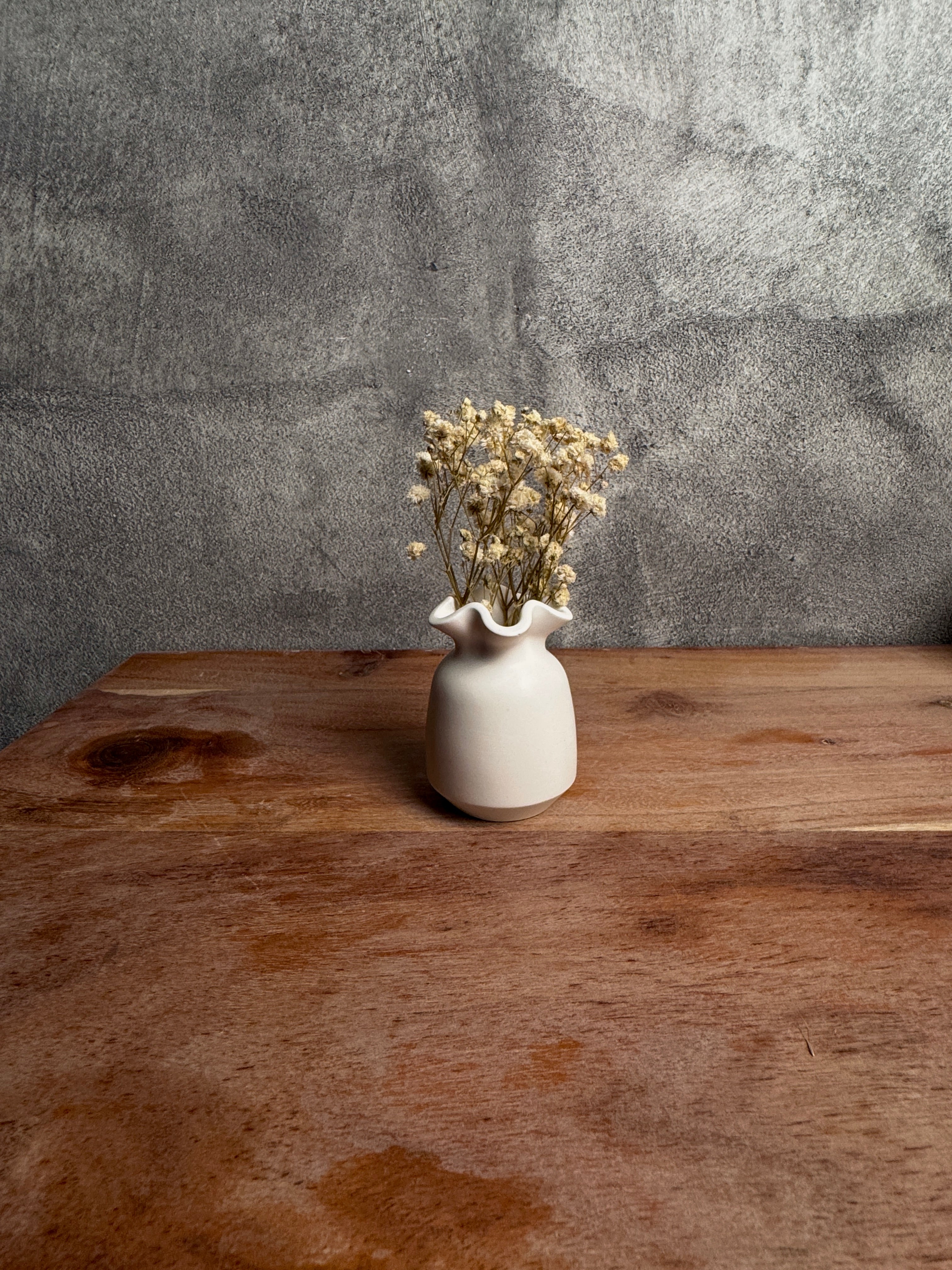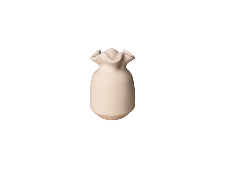 Forma organica si marginea delicata, ca de dantela, transforma vaza Daisy intr-o piesa statement. Designul sau elegant si silueta minimalista o fac o alegere atemporala, ideala pentru a pune in valoare flori uscate, lumanari sau chiar ca decor de sine statator. Un accent subtil, dar rafinat, pentru orice spatiu.